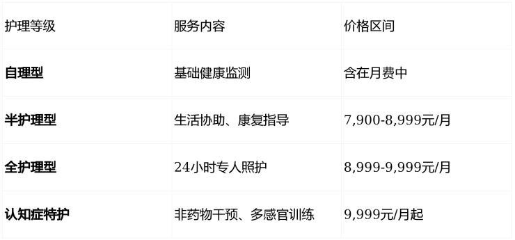 极少押金,月服务费1.2万元/2人(含基础护理及定制餐)