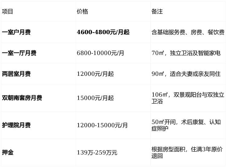 资金安全:港资背景,押金139万-259万元(根据房型),住满3年原价退回,不住满3年仅扣3%手续费——比保险更灵活,比买房更安心。