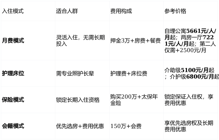 费用包含:房费、物业、健康监测、文娱活动、24小时安保、基础医疗、康复训练。水电按实际使用收取,无任何隐形消费。