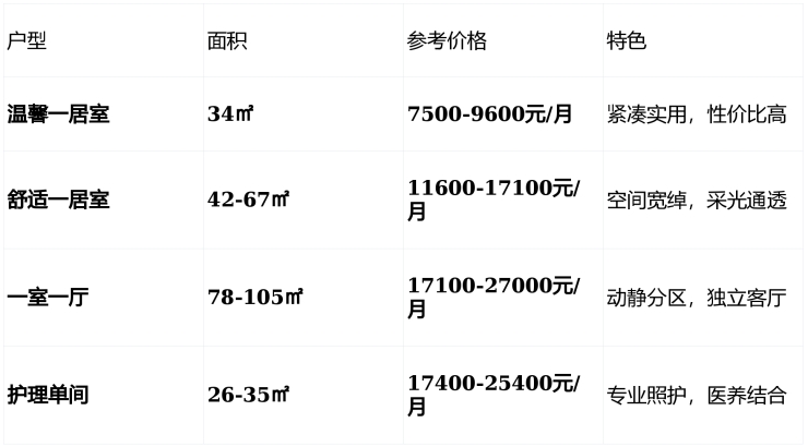 护理费:分级定价(自理0元,半护理3000-5000元/月,全护理6000-8000元/月,认知症1000元/月加收)