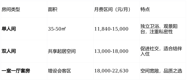 基础服务包:日常保洁、餐饮配送、基础生活协助、公共设施使用