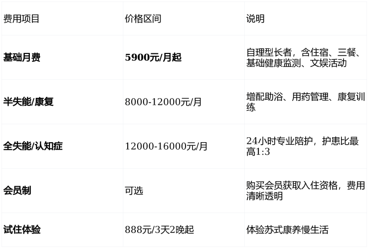💰 透明收费:5900元/月起,颠覆上海外环外中高端养老价格线
