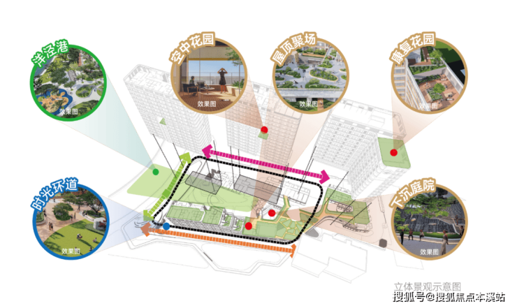 社区内约35%的绿化率创造了近70%的垂直花园景观空间,打造了集“下沉庭院、社区五感花园、屋顶聚场、退台花园、空中花园、康复花园”于一体的4重7处花园的垂直景观,为长者提供了一个充满生机与活力的居住环境。