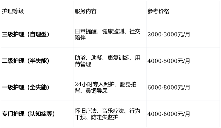 🛡️ 四级护理体系:精准匹配,按需付费