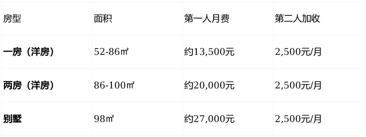 费用包含:居住空间、三餐、基础医疗、文娱活动、智慧监护、会所使用、农场体验等近200项服务