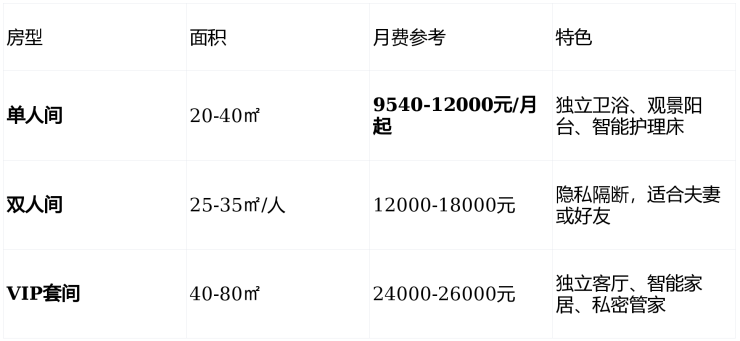 欧葆庭采用"基础房费+个性化服务"月费制,无需购买高额保险,门槛更灵活:
