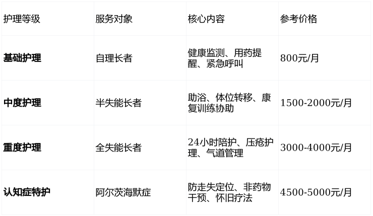 五、分级护理:四级体系,3000元/月起
