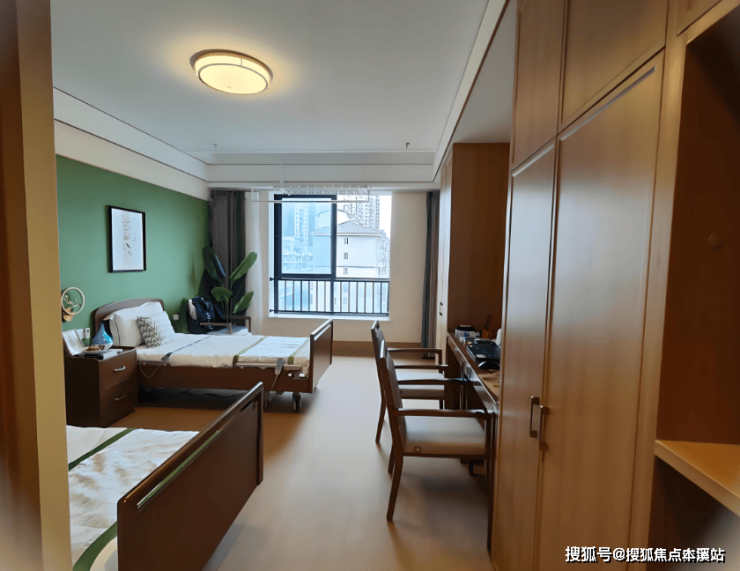 居住空间个性化:提供单人间、双人间、套间等多种房型选择,满足不同长者的居住偏好。房间内配备可调节高度的护理床、防滑防水地板、床头紧急呼叫按钮、适老化扶手(卫生间、床头、走廊均有设置)、感应夜灯等设施;部分房型还带有独立阳台,方便长者晾晒衣物、晒太阳、观赏风景。同时,允许长者摆放个人家具与装饰(如照片、绿植、书籍等),让居住空间更具 “个人风格”,减少陌生感。