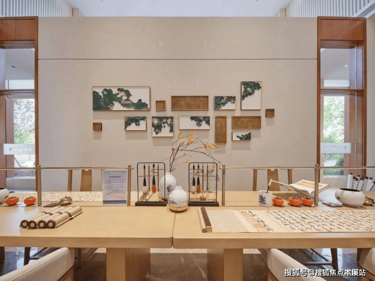 1. 邻里四友会客厅(近1000㎡)中庭环绕设计,以"书、画、花、雀"为主题: