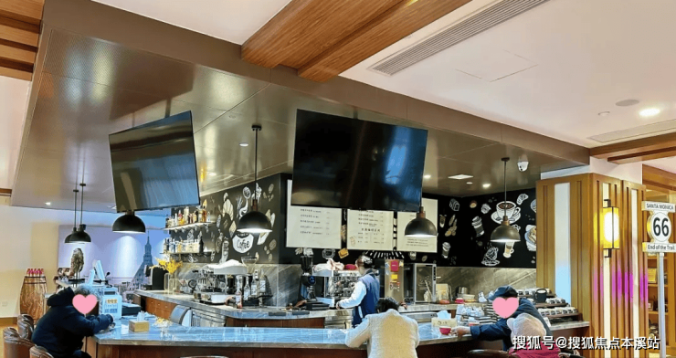 星堡中环店二期采用美式装修风格,宽敞明亮的咖啡吧,挑高的屋顶,可以围炉而坐的地炉,吸引了很多老人在这里聊天、社交。