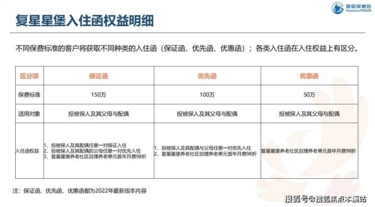 保费100万、50万只有有优先入住资格或首年入住优惠,具体可以看下表。