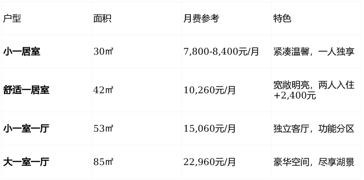 独立区:7,600-22,960元/月(根据房型)