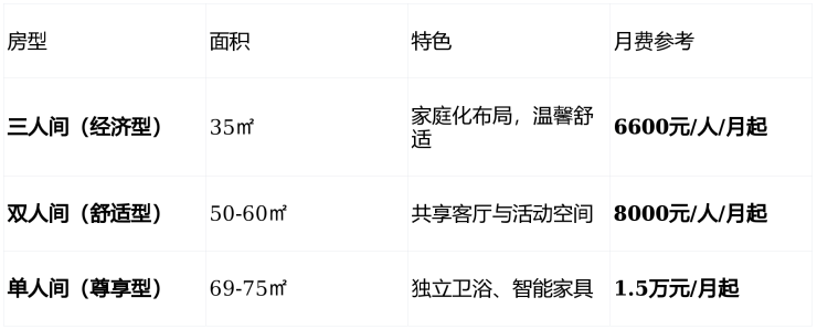 押金:根据房型从1万至5.5万元不等,退住可返还