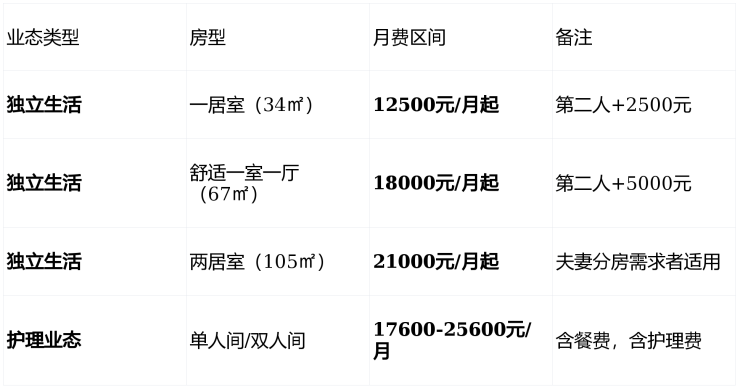 押金:4万元(活力区20万元/户,护理区10万元/人,可退)