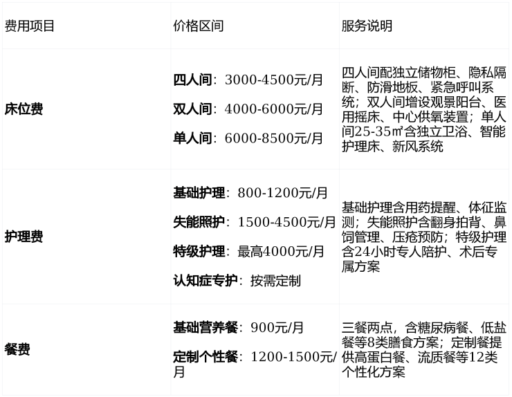 四人间+基础护理+标准餐:约3000-4000元/月(普惠型)
