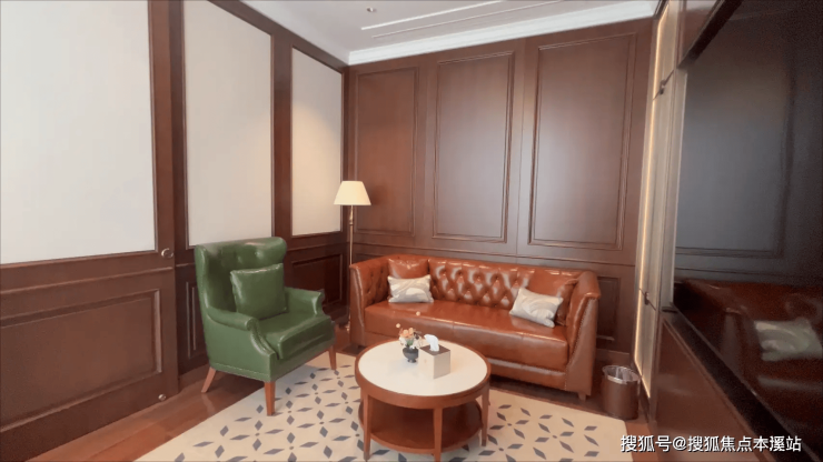 家具选择:圆形茶几、拉扣皮沙发,复刻老上海优雅