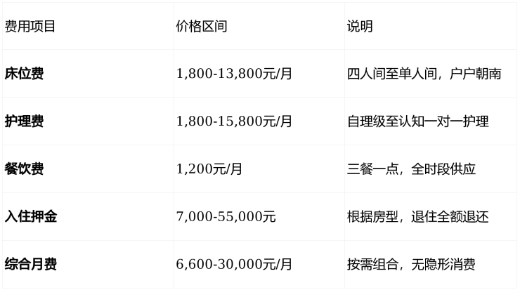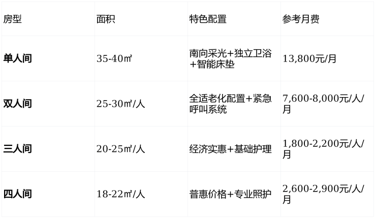 舒适型:双人间+标准护理+餐饮 =10,000元/月起
