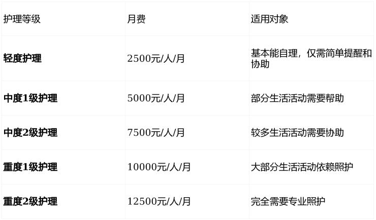 总费用区间:11000-18000元/月(根据房型、护理等级组合)