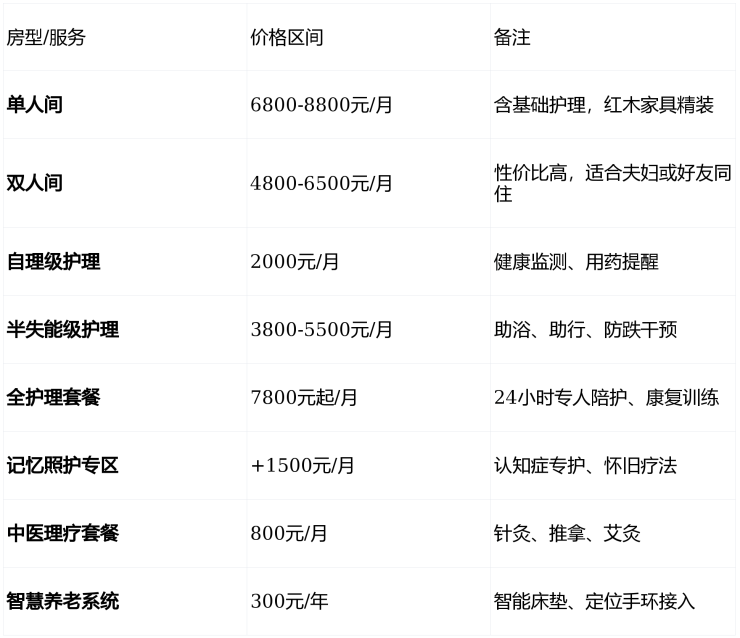 总费用区间:5000-15000元/月(根据房型、护理等级、餐标组合)