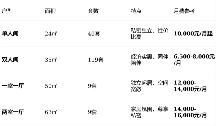 七、透明收费:6500元/月起的普惠高端