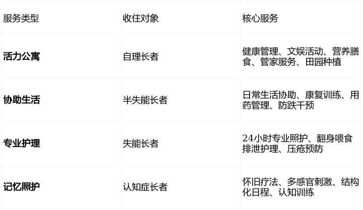 三、服务体系:CCRC全周期照护"永不搬离"