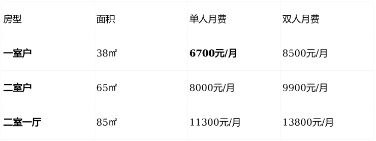 注:月费根据楼层、景观差异浮动5%-10%,具体以社区最新报价为准