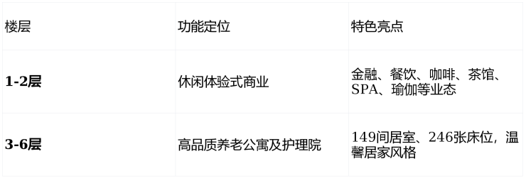 休闲业态:精品咖啡、茶馆、女性SPA、瑜伽馆、少儿培训 长者与家属足不出户,即可享受丰富多彩的都市慢生活