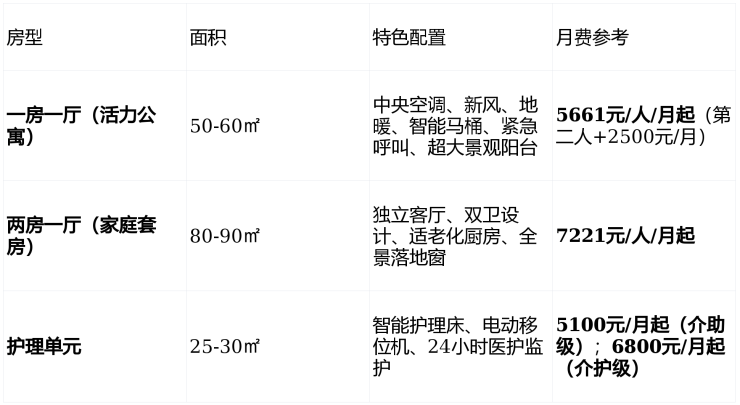 月费模式:无需保单,退休金即可轻松入住,6000元/月起