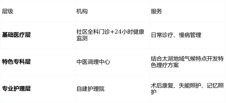 🏥 三、医养融合:三级医疗体系+智慧养老双保险