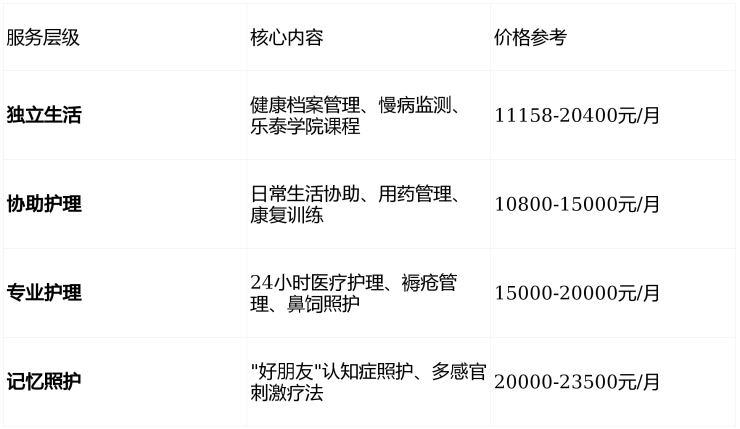 月费制:独立区11158元/月起,护理区10800元/月起