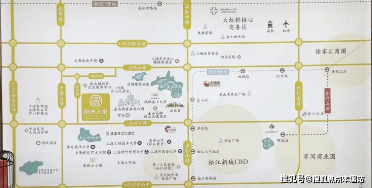 区位交通便捷,临近地铁9号线,多条公交线路环绕,自驾经沪昆高速、沪渝高速可快速通达市区核心商圈,让亲情探访无需长途奔波。周边3公里内覆盖上海市第一人民医院(南院)、松江区中心医院等优质医疗资源,构建“15分钟黄金医疗圈”;佘山万达、开元地中海等商业综合体近在咫尺,超市、菜市场、银行等生活配套齐全,加上社区内的便民商业设施,让长者既能享受山水静谧,又能便捷融入都市生活,实现“离尘不离城”的康养理想。