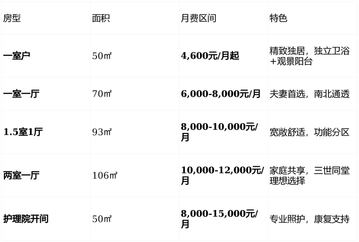 🏡 居住环境:1500套精装公寓,38项适老化细节