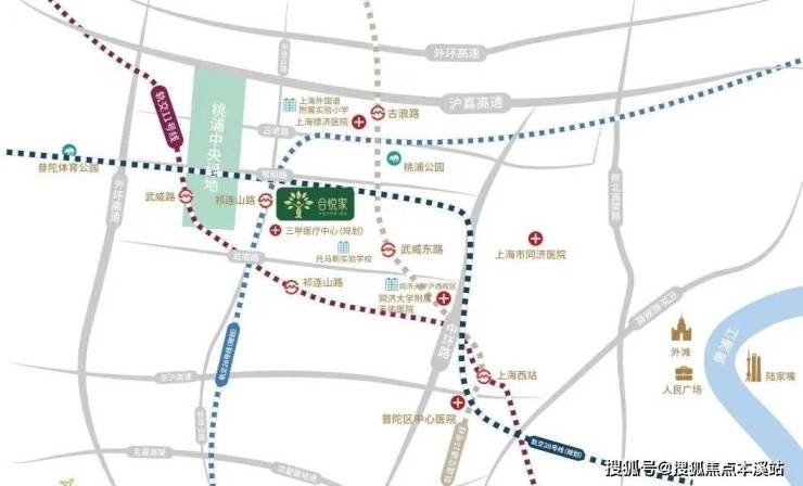 颐养中心坐落于上海市普陀区祁连山路与常和路交叉口东南40米,地处中环边,交通便利,真正实现“地铁开到家门口”。周边有地铁11号线、15号线以及规划中的20号线、26号线,四轨交汇,为长者出行提供极大方便。驾车出行也十分便捷,10分钟内可上中环、外环、沪嘉等主要道路,还有多条公交线路可达普陀全境。