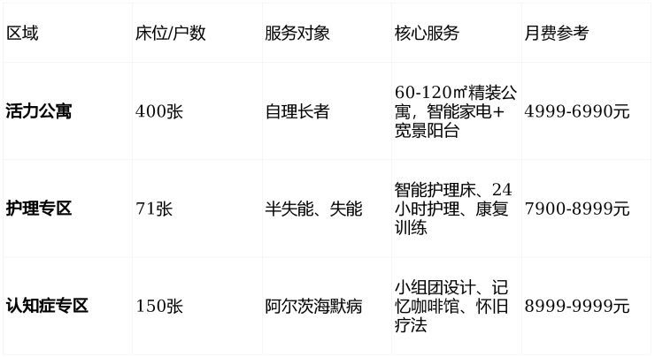 总建筑面积:6.5万㎡ | 养老单元:626户养老公寓+71张护理床位 | 在住长者:450+户(2025年数据)