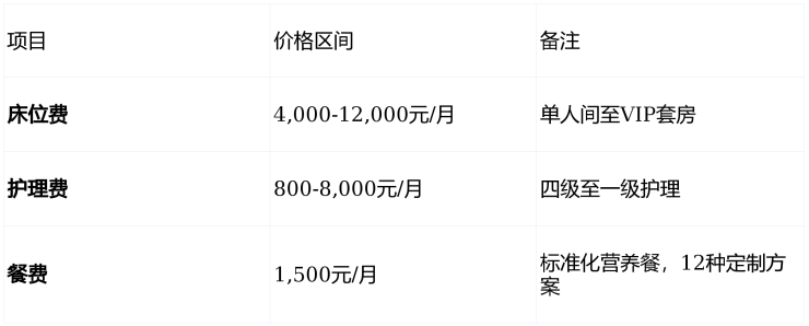 分级护理:四级护理(800-1200元/月)至一级护理(6000-8000元/月)
