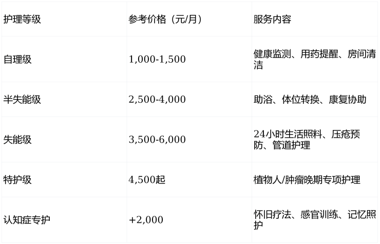💰 收费透明合理:6,000元/月起,分级计价,无隐形消费,支持长护险