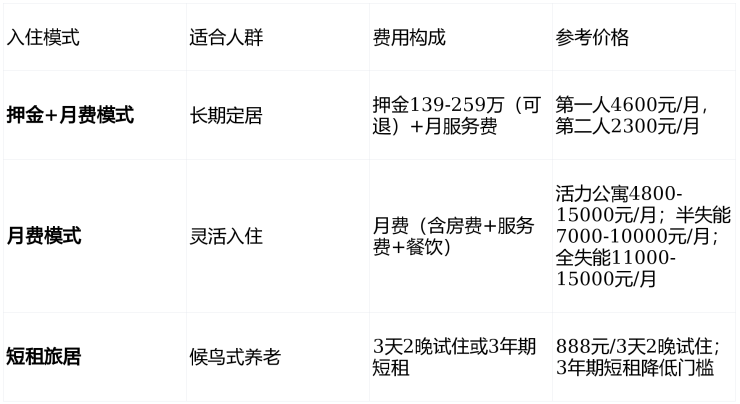 费用包含:住宿、基础照护、三餐、会所健身、文娱活动、24小时安保。水电按实际使用收取,无任何隐形消费。