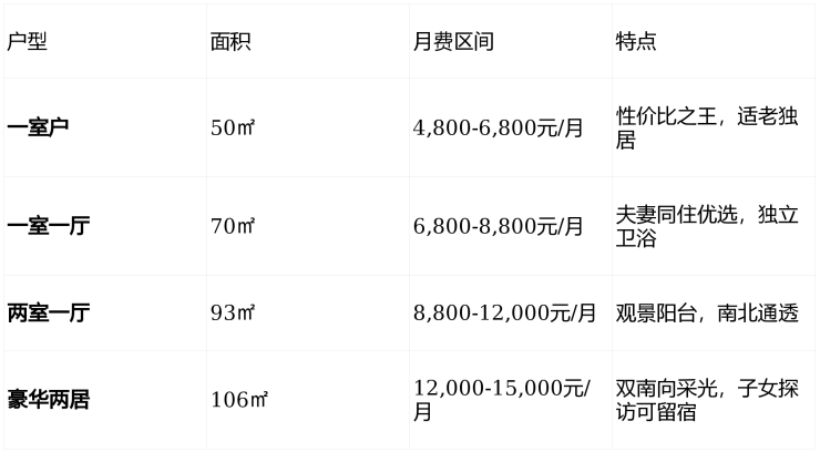 隽芳华采用"押金+月费+护理费"灵活模式,价格透明,无隐形消费