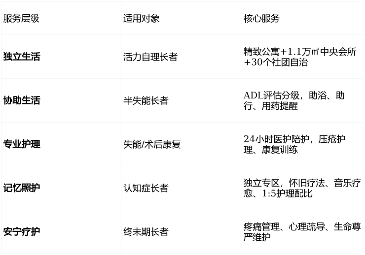 🏥 三、CCRC全周期照护:一个永不搬离的家