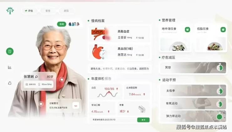 国华和悦家联合华为开发了独具特色的数智化健康管理平台。可通过可穿戴设备、终端设备等收集长者的饮食、运动、睡眠等数据,并通过AI智能决策反馈与专业服务团队实时评估跟踪相结合,将长者的健康干预融入到每天的生活之中。