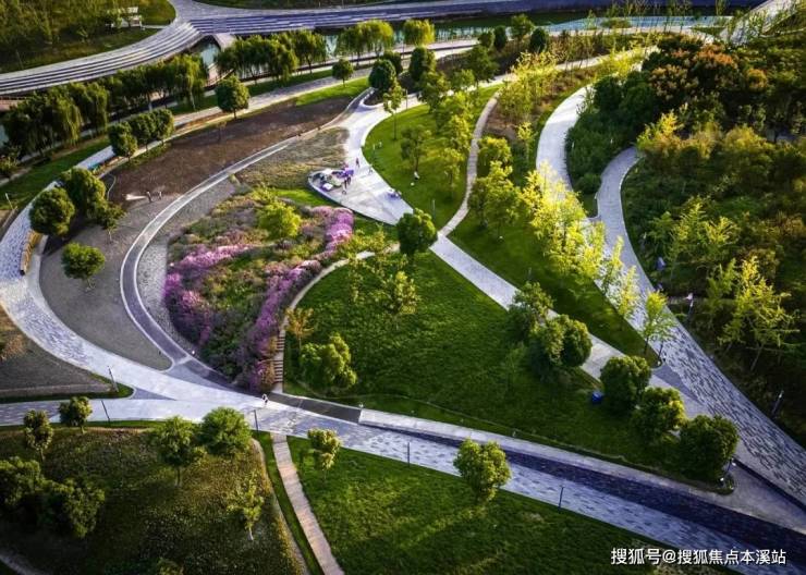 400米可及中心城区最大的“城市绿洲”-桃浦中央绿地,总用地面积高达53万平方米,以中国传统书法和舞蹈为灵感,融合都市人工次生林、人工树林草地与赏花园区于一体的生态群落,让人们可以沉浸式体验美好时光。