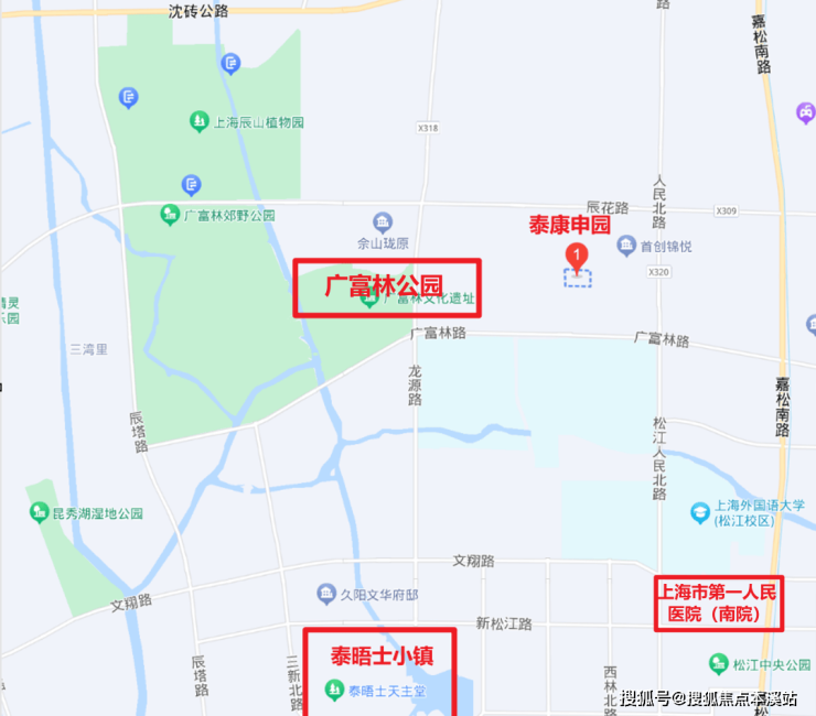 - **生态维度**:位于松江佘山广富林街道,三面环水,毗邻广富林遗址公园、辰山植物园,森林覆盖率86%,PM2.5指数上海最低,负氧离子3000个/cm³