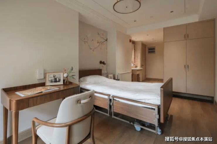 护理专区:去机构化设计,木质家具圆角处理,记忆台定位房间,护理床多段式升降