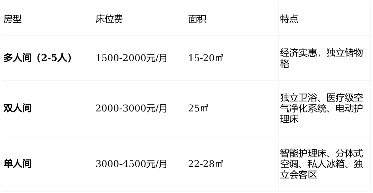 舒适型:双人间+二级护理+标准餐 ≈ 7000-8500元/月