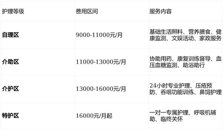 分级护理费明细: