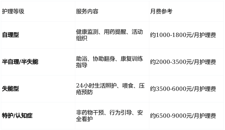 ,收住对象覆盖自理、半自理、不能自理、特护、认知障碍全周期长者