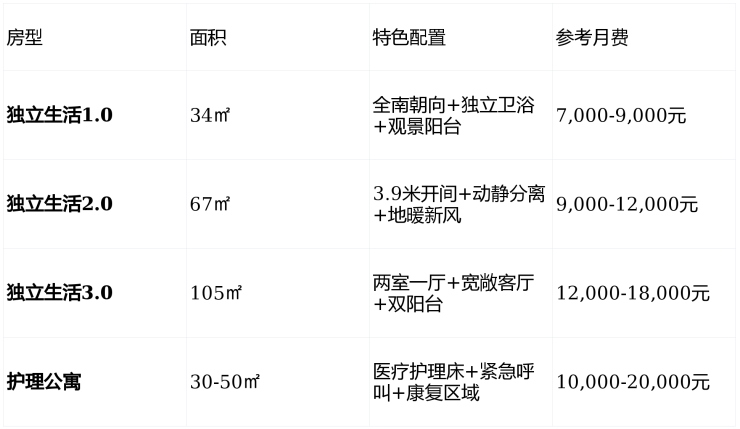 分级护理:独立生活、协助生活、专业护理、记忆照护四大区域