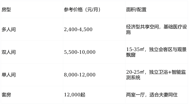 综合月费区间:6,000-12,000元/月(根据房型与护理等级组合)